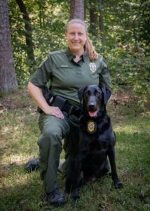 For nearly a decade Conservation Police Officer Bonnie Braziel has worked for the Virginia Department of Wildlife Resources to enforce the state’s hunting, fishing, and boating laws and to help solve criminal investigations with her K9 partner Grace. Braziel has a degree in Recreation and Leisure Studies and a minor in Business from Virginia Wesleyan College.