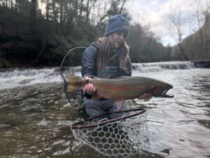 In 2022, Clasgens made history by becoming the first woman to own and operate a fly fishing guide service in Ohiopyle State Park. Since then, she’s continued to lead with purpose, organizing and teaching numerous women’s clinics to help make fly fishing more accessible to and empowering for women of all skill levels.